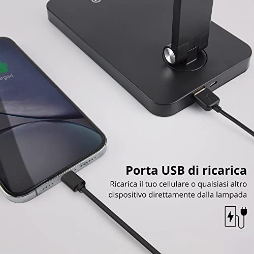 NUOVA GERMANY Lampada da Scrivania LED Protezione Degli Occhi, lampada Touch Control Pieghevole per cameretta,ufficio, con porta di ricarica USB, Dimmerabile, 5 modalità di bianco 2800K-6500K (Nero)