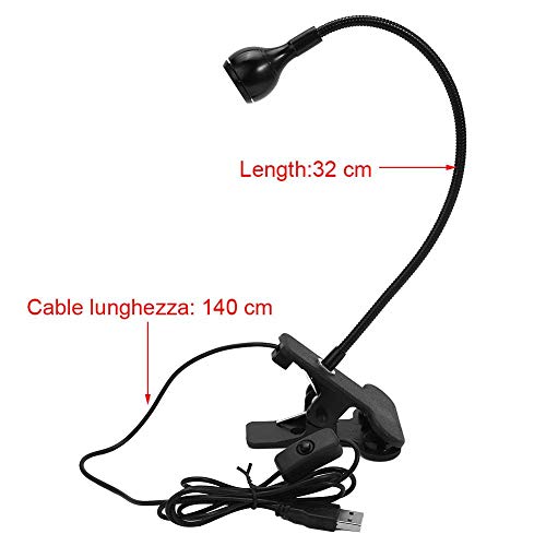 Luce a clip, nuova lampada da lettura a LED USB a collo di cigno flessibile Lampada da tavolo portatile per computer Lampada con clip bianco freddo 1W(Nero)