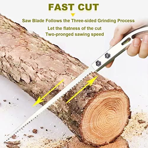 【Facile da trasportare】: questa sega da potatura è uno strumento indispensabile. La sega a mano leggera è facile da riporre nella cassetta degli attrezzi della tua auto e più facilmente posizionata sul lato dello zaino quando sei in campeggio, risparmiando spazio per il campeggio all'aperto, l'escursionismo, la caccia e il taglio della legna.