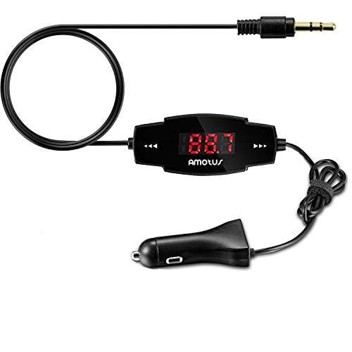 Nuova Release - iAmotus trasmettitore FM wireless senza cavi kit auto stereo con spina 3.5mm, Bundle con 5V / 2.4 a USB Charger per iPhone 7/6s plus, iPad Samsung HTC MP3, MP4 e più telefoni Android