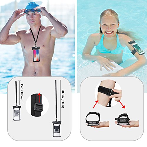 [IPX8 Certificato Impermeabile] Offre un semplice scatto e accesso di blocco, completamente immergibile e impermeabile fino a 100ft / 30M, protegge il telefono o altri oggetti da acqua, sabbia, neve e polvere mantenendo la piena funzionalità del touch screen. (NOTA: i touchscreen capacitivi non funzionano sott'acqua, l'acqua interrompe il circuito. Si prega di accendere la fotocamera del telefono prima di immergersi nell'acqua, quindi utilizzare i pulsanti del volume per scattare foto sott'acqua