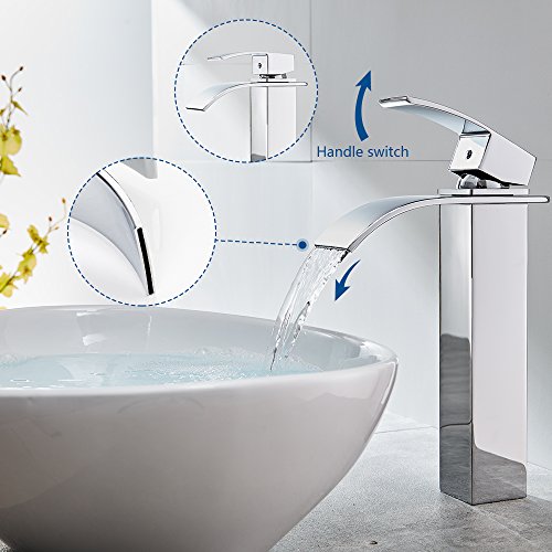 Nuova Versione - Rubinetto Bagno Cascata Auralum Miscelatore Monocomando Per Lavabo Bagno Ottone (Cromo Alto)