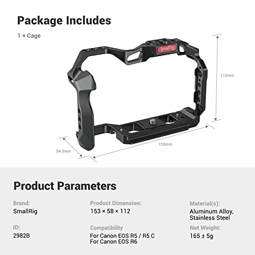 VERSIONE AGGIORNATA: SMALLRIG R5 R5C e R6 Cage 2982B è stato riprogettato. L'aspetto è più ergonomico e la funzione è stata notevolmente migliorata. Il lato destro è progettato per adattarsi alla maniglia della fotocamera per una sensazione di presa originale e confortevole.