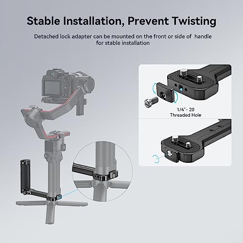 [Design Anti-torsione]: La maniglia laterale è dotata di una piastra anti-torsione sul lato per fissare stabilmente lo stabilizzatore e la fotocamera nelle posizioni anteriore, posteriore e sinistra. Inoltre, il cuscino in gomma sul fondo dell'impugnatura laterale potrebbe aumentare l'attrito tra l'impugnatura e la fotocamera.