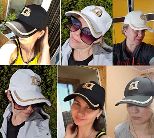 Nuovi Cappello da Baseball con lettera D, Cappello D Cotone con Diamanti d'imitazione con Schiena a Pressione per Donna, Cappello Brillante di Hip Hop, Cappelli Brillanti Regolabili da Donna, Nero, M