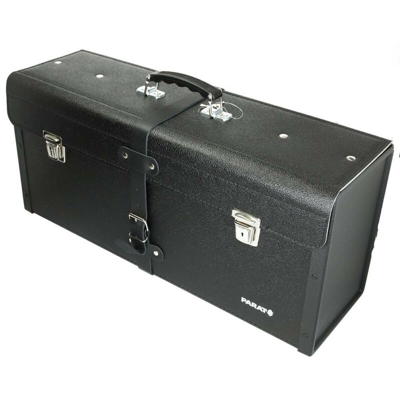Questo toolbox non attrezzato e extra-lungo offre più ordine e chiarezza, soprattutto per il commercio della salute. La robusta pelle artificiale è rinforzata da pannelli laterali in plastica e il rivestimento interno Con-Pearl® rende l'interno particolarmente resistente. nel coperchio sono anelli per il livello con la bolla e sulle pareti 20 loop di utensili fissi e 8 tasche cucite per strumenti. le serrature con inserimento solido e bloccabile e il ciclo di chiusura circonferenziale impediscono all'apertura della scatola sotto un carico pesante. Materiale: Pelle sintetica Dimensioni: 640 x 320 x 210 mm Colore: Nero EAN: 4006793741416 Peso [kg]: 2,7