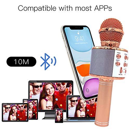 2020 Nuovo design - Microfono Karaoke Bluetooth senza fili, Microfono portatile Altoparlante Registratore, Altoparlante Karaoke ricaricabile (Rose Pink)