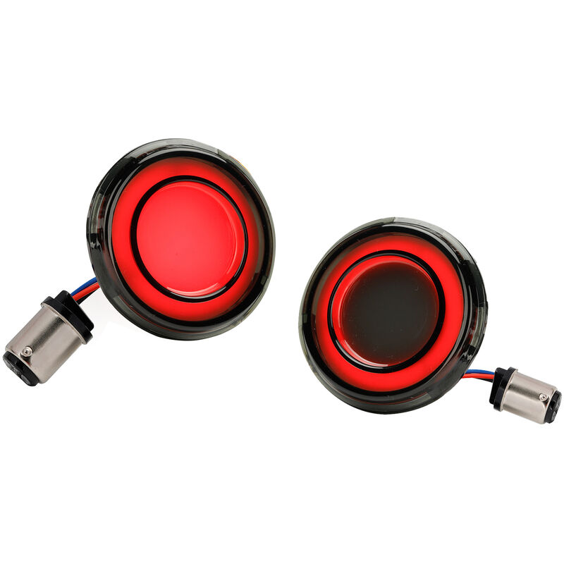 Luce di marcia anteriore posteriore da 2 pollici Luce di marcia 87 lampadine a LED, guscio nero Indicatore di direzione a LED (tutto rosso) DRL (alone rosso) 2 pezzi di ricambio per Dyna Softail Touring Street Glide Road King 1997-2021 Caratteristiche: Ogni indicatore di direzione a LED è composto da chip di alta qualità per offrire colori brillanti, alta visibilità, mantenendoti più sicuro durante la guida e fornendo un nuovo schema di illuminazione. Queste luci hanno un bell'aspetto con lenti trasparenti o fumé per il massimo effetto. Rende il tuo affascinante softtail più alla moda. Questa versione adotta uno stoppino luminoso 3015 importato, con durata fino a 40000 h, IP65 impermeabile, resistenza alle alte temperature, forte stabilità, resistenza agli urti e non fragile. L'alone rosso è la luce di guida e tutte le luci rosse appaiono all'accensione. Il diverso stato di colore lo rende più evidente e accattivante. Un pezzo unico di nuova concezione lo rende facile da installare.