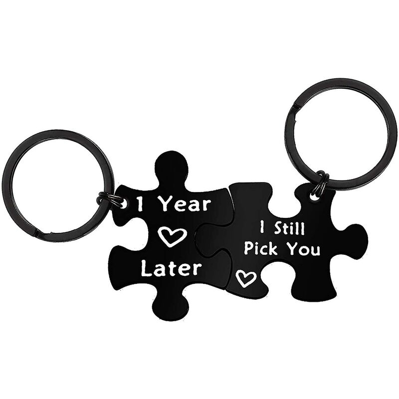 Set di portachiavi abbinati per coppia: regalo perfetto per il tuo ragazzo/fidanzata o marito/moglie per il primo anniversario. Per tutte le festività, come anniversario di matrimonio, festa della mamma, San Valentino, Natale, compleanno, fidanzate quotidiane, fidanzato, maritou0026 moglie, padre, madre, bambini, nonni, amici e famiglia. PERFETTO REGALO PER COPPIA: questo portachiavi per coppia è un regalo di anniversario per moglie, marito. I regali di compleanno dolci e premurosi di 1 anno ricordano ai tuoi cari che li amerai per sempre. Fai sapere a quell'uomo/donna speciale quanto lo ami. Set di portachiavi per l'anniversario abbinato: acciaio inossidabile di alta qualità, privo di piombo e nichel. L'acciaio inossidabile è ipoallergenico, non arrugginisce, non cambia colore e non si ossida. Perfetto per l'uso quotidiano e tesoro. Regalo di compleanno: Eleganti sacchetti di velluto vengono utilizzati per imballare e spedire il nostro portachiavi, pronto per essere regalato