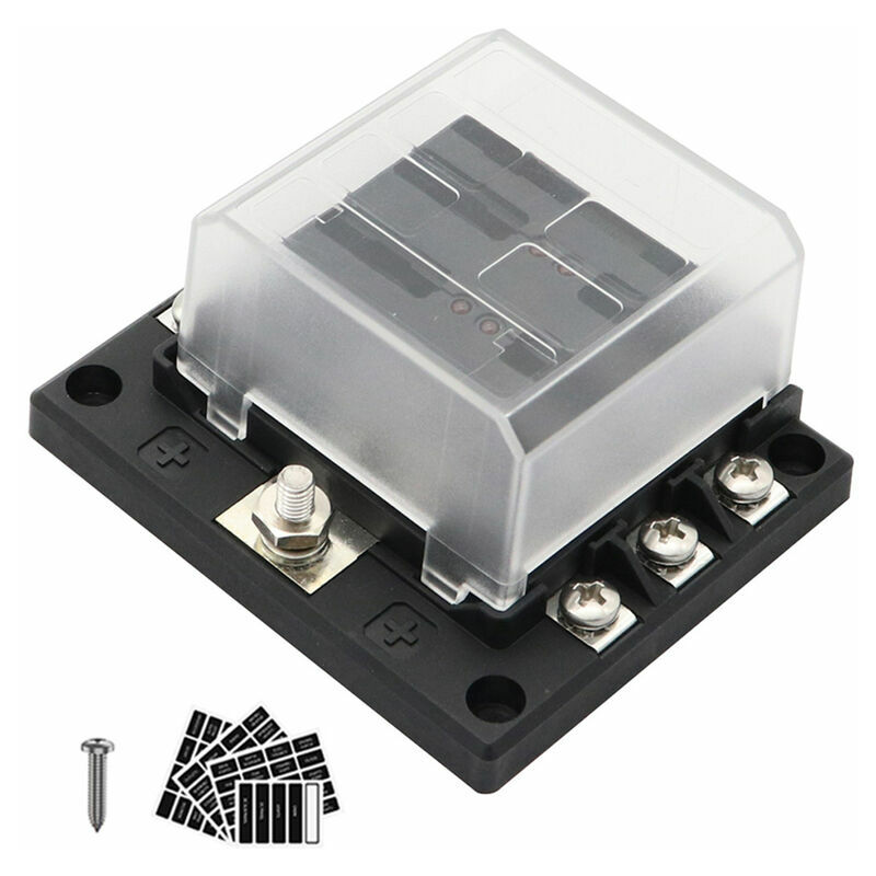 Caratteristiche: l'indicatore LED si accende quando il fusibile è bruciato, il che può essere sicuro e conveniente da controllare e riparare. Il design della presa del fusibile di ricambio può contenere 2 fusibili di riserva. Adatto per auto da 12-32 V, yacht, camion, moto, minibus e così via. La rotazione di 180 gradi del design del coperchio trasparente consente di regolare l'altezza del coperchio superiore della scatola dei fusibili in base alle dimensioni dei fusibili necessari. Accetta fusibili a lama standard (ATP / ATC / ATO). Copertura trasparente con area incassata per l'etichettatura di adesivi, comoda per l'esame e la riparazione. Caratteristiche: Tipo di montaggio: fusibile medio, fusibile a ripristino manuale medio (ATP/ATC/ATO) Tensione: 32 V CC MAX Amp nominale per ramo: MAX 30 A (terminali a vite) Max amplificatore cumulativo: 100 A per blocco Terminale Dimensione perno: M5 (# 10 ) (3/16) Dimensione vite: M4 (#8) (5/32) Materiale: PC+PBT Colore: Multicolore Peso