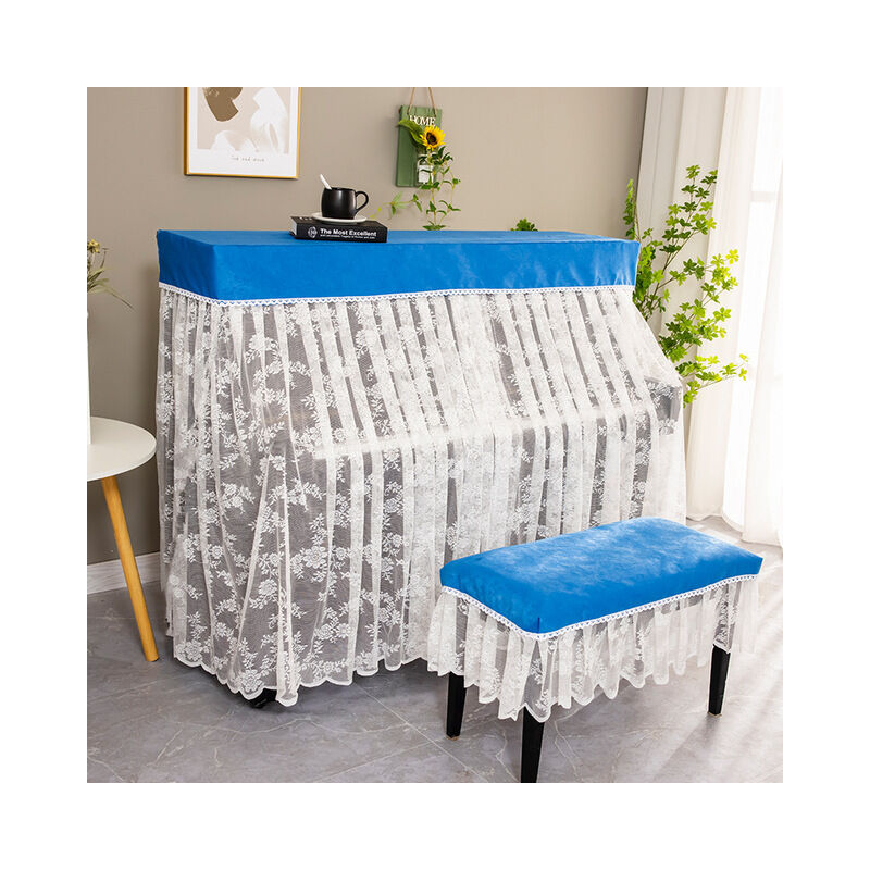 Nuovo stile europeo semplice copertura per pianoforte verticale copertura per sgabello mezza copertura antipolvere copertura protettiva per pianoforte in pizzo panno per tastiera Sgabello singolo-set: copertura superiore per pianoforte e copertura per sgabello singoloSgabello doppio-set: copertura superiore per pianoforte e doppio sgabello