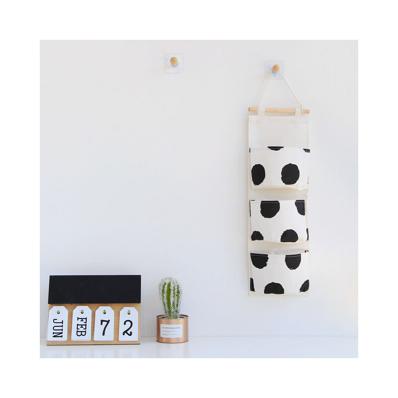 Black and White 3 Pockets Wall Hanging Storage Bag Fabric Pouch Closet Door Closet Cosmetics Toys Storage Bag Home OrganizerName:3 pocket hanging bagMaterial: wooden stick + cotton rope + cotton clothSize:20*57cmPackaging:OPP