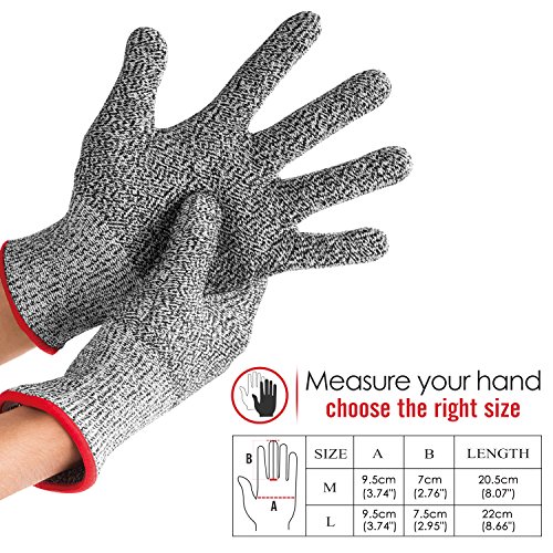 Nuovoware Guanti Resistente al Taglio, Protezione di Livello 5, Food Grade, Protezione le mani, Ottimo per Cucinare, Tagliare, Affettare, Pelare, Intagliare il Legno, Misura L