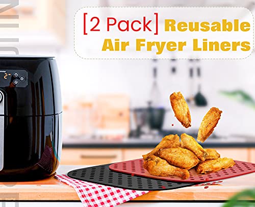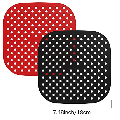 Nuovoware 2 PZ Tappetino da Friggitrici ad Aria Quadrato, 19 cm Tappetino Perforato Antiaderente per Cottura a Vapore Fodere per Friggitrice Riutilizzabile per Dessert Pane Tostato - Nero&Rosso