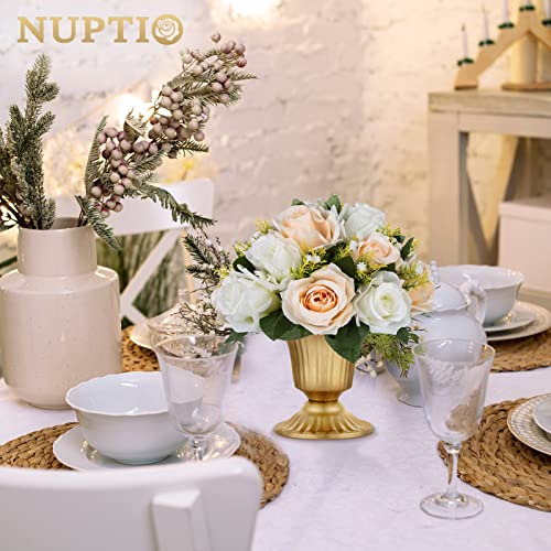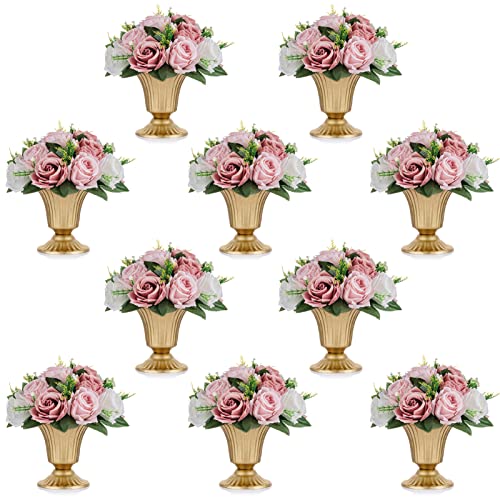 Nuptio Vaso D'oro per Centrotavola Matrimonio - 10 Pezzi 14.5cm Altezza Vasi A Tromba Metallo Fioriera Urna Piccola Elegante Centrotavola Matrimonio per Natale Festa Anniversario Decorazioni Casa