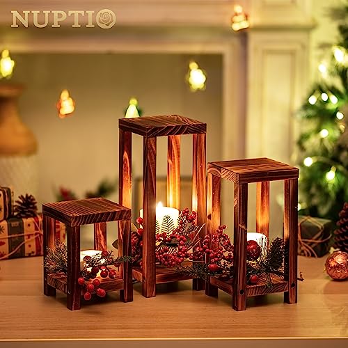 NUPTIO Lanterna di Legno Candele Interno: 6 Pezzi Lanterne Rustiche Il Soggiorno Portacandele, Decorativo Natale Pilastro Candela Stand Matrimonio Mantelpiece Tavolo da Pranzo 32.5cm&25.7cm&17.7cm