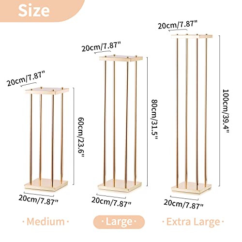 Elegante e Stabile: I nostri vasi da centrotavola alti da terra con design a tubo rotondo e piastra metallica quadrata in alto e in basso migliorano notevolmente la stabilità del supporto a colonna alto. Il design elegante e glamour è adatto a più occasioni. Il semplice portavaso a colonna sarà sicuramente il fulcro del vostro matrimonio o della vostra festa.