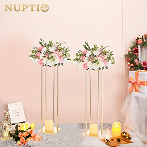 Nuptio Vasi di Nozze D'oro Centrotavola - 10 Pezzi 80cm Alto Metallo Vaso di Fiori Strada Piombo per Matrimoni Cena Centrotavola, Colonna Espositore per Anniversario Compleanno Decorazione Casa