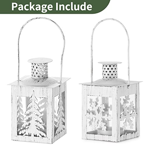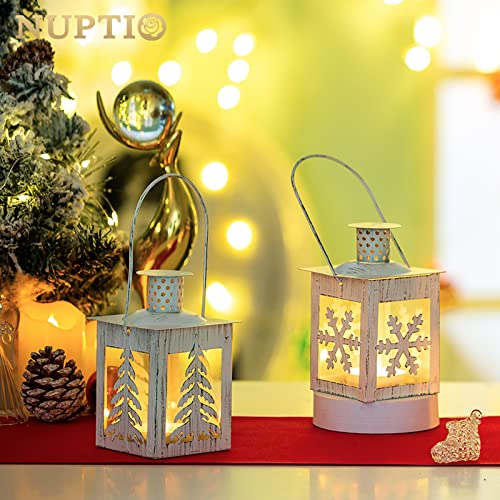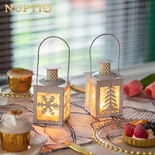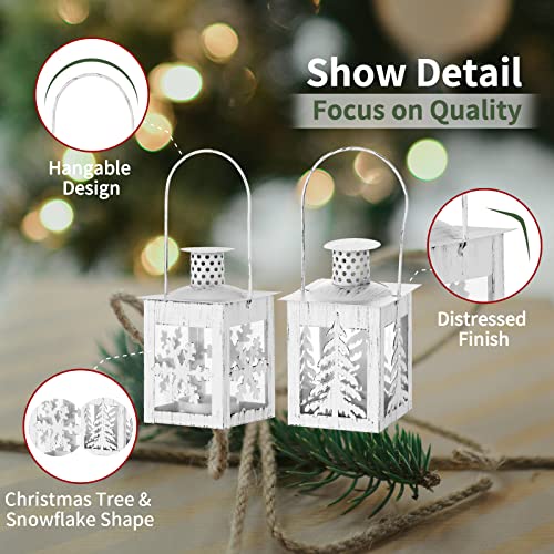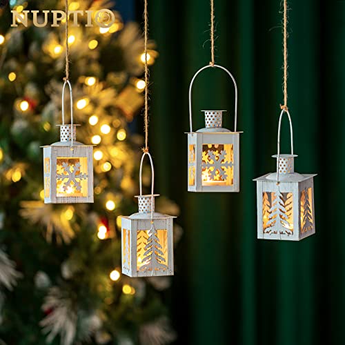 Portacandele Antichi - I portacandele a sospensione NUPTIO sono realizzati in metallo e vetro di alta qualità. Disponibili in 3 forme: albero, fiocco di neve e renna. Le piccole lanterne a candela in bianco anticato sono più facili da realizzare. Aggiungono un'atmosfera festosa alla vostra casa con un look retro-chic.