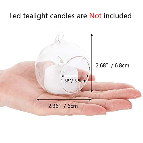 Nuptio 24 Pezzi Portacandele Vetro Appendere Globo 6cm Diametro, Portacandele per Lumini Matrimonio Natale Halloween Regali Fai Te per Casa, Ornamenti Appendere Giardino Portacandele Esterno