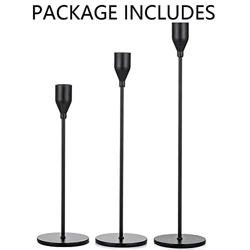 Nuptio Portacandele Nero, Portacandele Conici Testa Singola in Ferro Battuto, Portacandele Centrotavola Ornamenti per Cena A Lume di Candela per Matrimonio, 3 Pezzi/Set