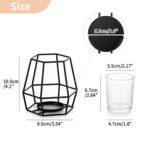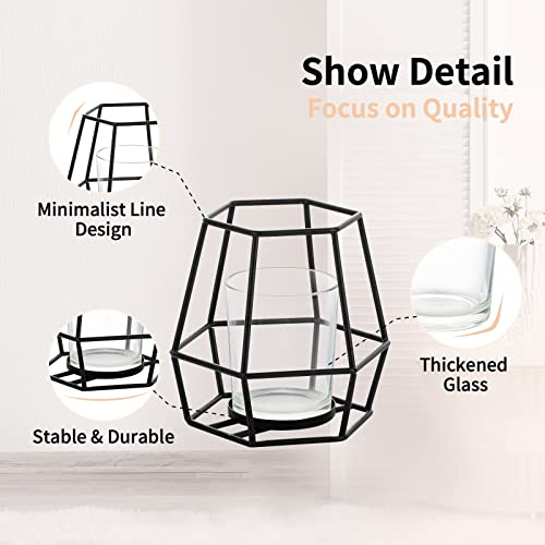 Nuptio Portacandele Pilastro Porta Candele Nero Candelabro 2 Pezzi Candelabri Geometrici con Candelieri Votivi Vetro Portacandele Metallo Centrotavola per Halloween Ufficio Decorazioni per la Casa