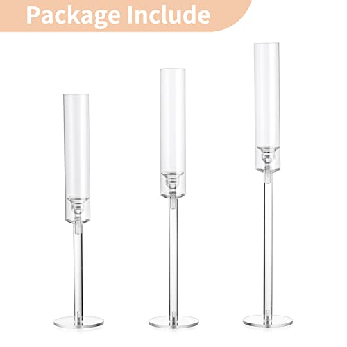 NUPTIO Portacandele Uragano Chiaro: Portacandele per Candele Lunghe, Portacandele Acrilico Portacandele Cilindro Decorazione Centrotavola Matrimonio Festa Sala da Pranzo, Set di 3