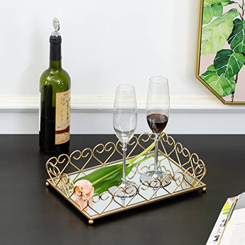 Nuptio Vassoio Specchio Vassoio Oro Lunghezza 31.5cm Vassoio Decorativo Rettangolare Vassoio Profumo per Comò, Vassoio Toeletta Portacandele Vassoi per Natale Matrimonio Bagno Camera Letto