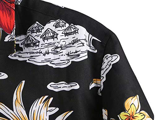 NUTEXROL Camicia a maniche corte da uomo, estiva, traspirante, comoda, per il tempo libero, in 100% cotone, nero 1, XL