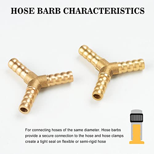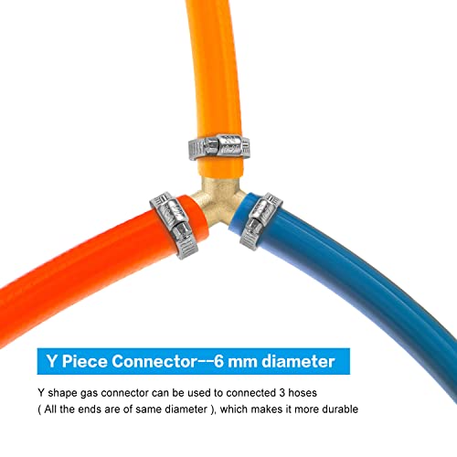 Nutmanel 2 Pezzi Connettori a Y per Tubi da 6mm, Raccordo a T del Tubo in Ottone, Raccordo a 3 Vie a Forma di Y per Tubo con 6 Pezzi di Collari di Serraggio del Tubo