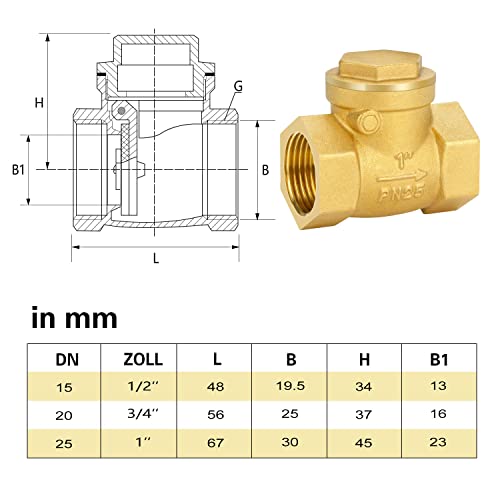 Nutmanel Valvola di Ritegno Filettatura Interna in Ottone, Valvola di Ritegno 1" Check Valve DN25 Filettatura Interna per Tubi