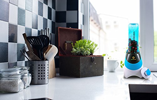 Nutril Overs Smoothie Maker con bevanda della bottiglia to go (senza BPA) - Mini stand Mixer | Lame in Acciaio Inox, fino a 23.000u/min, 0,4ps Motor (300 Watt) blau
