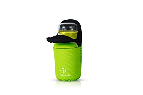 NUTRILOVERS Nutri-Gold - Bottiglia in Vetro per Succo Slow Juicer, con Custodia, Resistente alla Luce e agli Urti, Colore: Verde Verde