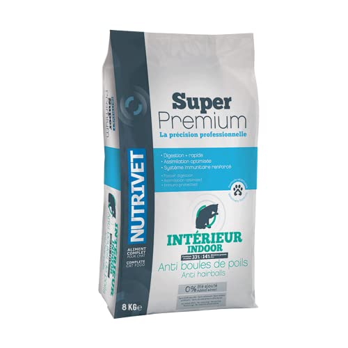 NUTRIVET - Super Premium - Cat anti boli di pelo - Crocchette senza grano - Gatto adulto - Ricco di proteine animali - 8 kg