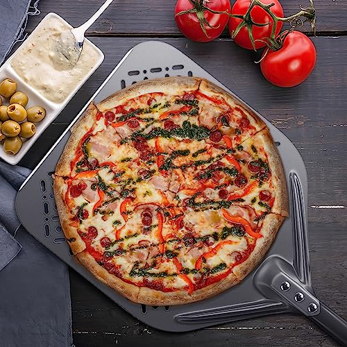 NUTUNI Pala per Pizza, Pala per Pizza in Alluminio Anodizzato Duro con Manico Buona Presa, Raschietto per Pizza Forata per Pizzas, Pane, Crostate Fatta in Casa