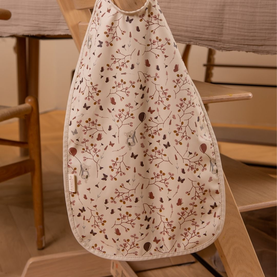 Dettagli del prodotto: Età: da 0 mesi Modello lungo per una protezione efficace Mantiene il bambino pulito e asciutto durante la pappa Facilmente lavabile Design in poliestere riciclato Per rendere meno disordinato il momento della pappa Elegante e facile da usare Design Koala Flower Materiale e dimensioni: Materiale: 68% poliestere riciclato, 32% poliuretano Dimensioni: 28 x 49 cm Istruzioni per la conservazione e la cura: Il bavaglino può essere semplicemente pulito, ma può anche essere lavato in lavatrice. La fornitura comprende 1 bavaglino lungo