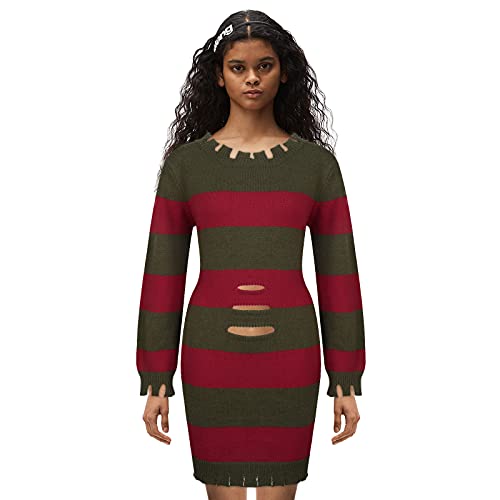 NUWIND Freddy Krueger Rosso Verde Maglione a Righe Maglione Lavorato a Maglia Vestito Nightmare on Elm Street Costume Cosplay per Adulti Donne XL