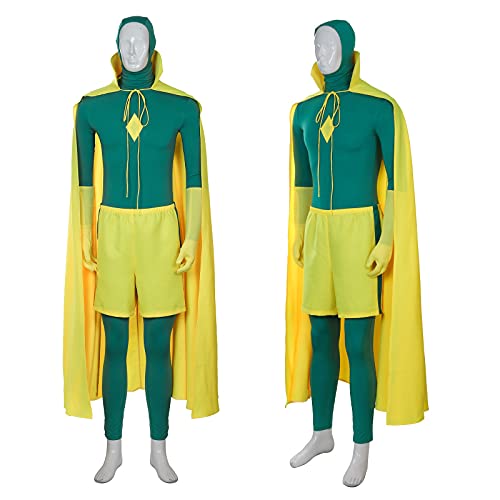 NUWIND Vision Costume Cosplay Mantello Giallo Tuta Verde Uomini Supereroi Accessori Completo per Il Carnevale di Halloween Fancy Dress Partito per Adulti XL