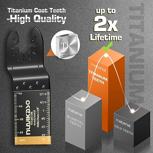 Nuyikaso Confezione da 8 lame multiuso in titanio per sega oscillante, accessori multiuso per legno, metallo, plastica, universale, a sgancio rapido, compatibili con Fein Multimaster, Makita, DeWalt,
