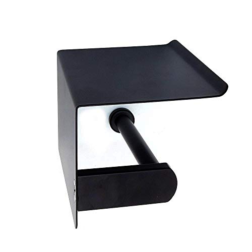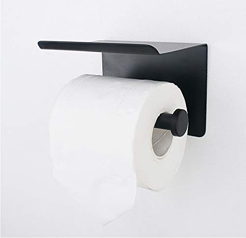 NUZAMAS Porta carta igienica autoadesiva, supporto per piastra superiore per telefono, montaggio a parete in acciaio inox, senza trapano, porta rotolo di carta igienica nero