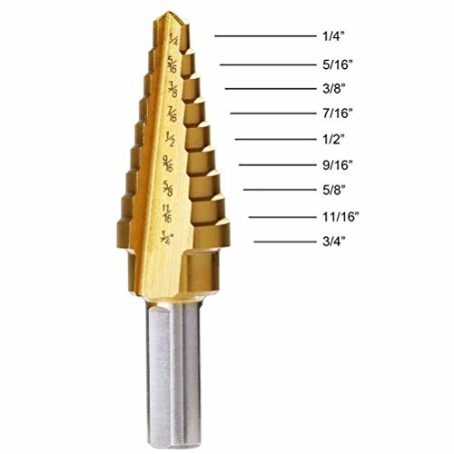 Set di 4 punte per trapano a gradini, rivestite in titanio, interamente in acciaio ad alta velocità, in totale 28 misure da 1/16" a 1/2", fornito con punzone centrali