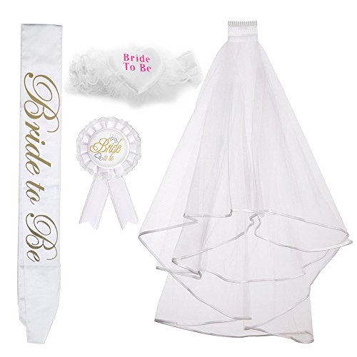 Il pacchetto include: 1 x velo bianco con il pettine, 1 x sposa di essere sash, 1 x giarrettiera, 1 x bride badge. Ideal per la decorazione addio al nubilato.