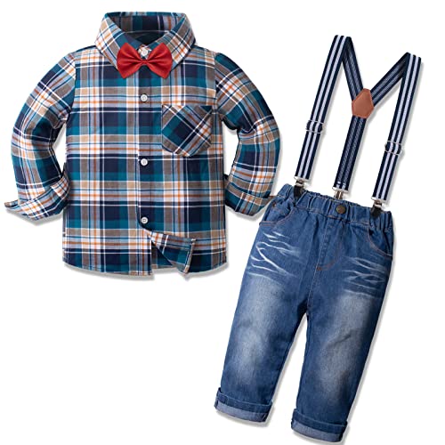 Nwada Completino scozzese da bambino Papillon Camicie + bretelle Jeans in denim Vestito natalizio da neonato 5 anni
