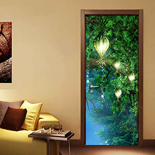 NXCNTD Carta Parati Porta 3D Scena notturna della foresta verde 80x210cm Fotomurali Poster decorazione per soggiorno asilo ristorante hotel bar ufficio Autoadesivo vinile Decalcomanie Rimovibile