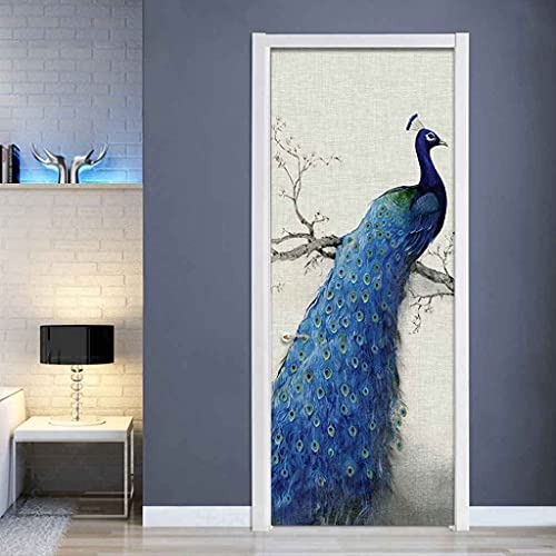 NXCNTD Carta da parati per porte 3D Sfondo animale pavone Natale interna porta adesivo Decorazione camera da letto per bambini in camera da letto impermeabile in Vinile impermeabile 77x200cm
