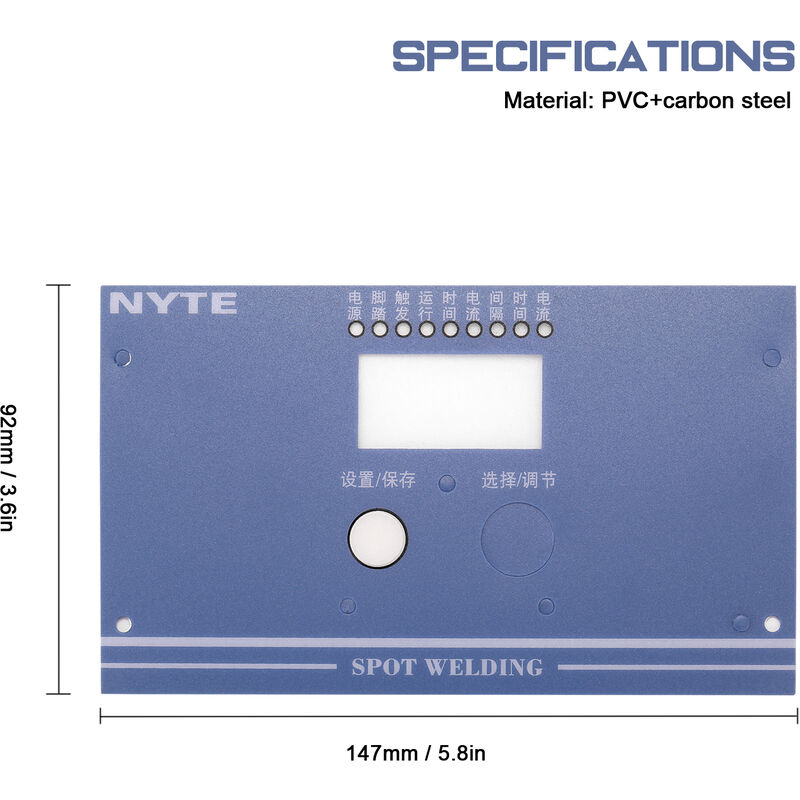 Questa e una pellicola per pannelli per saldatrice a punti digitale. Il pannello e spruzzato con acciaio al carbonio. Il film e realizzato in materiale PVC. Caratteristiche: Dimensioni standard, ben coperto sul pannello di controllo. Contrassegnato chiaramente, non facile da sfumare. Cio impedisce l'usura dei pulsanti e la sostituzione dell'intero pannello di controllo. Con superficie adesiva sul retro, strappo e incolla. Bella qualita ma poco costoso. Specifiche: Materiale: PVC + acciaio al carbonio Dimensioni dell'articolo: 147 * 92 mm / 5,8 * 3,6 pollici Peso dell'articolo: 74 g / 2,6 once Formato del pacchetto: 150 * 100 mm / 5,9 * 3,9 pollici Peso del pacchetto: 76 g / 2,7 once Lista imballaggio: 1 * pannello 1 * pellicola