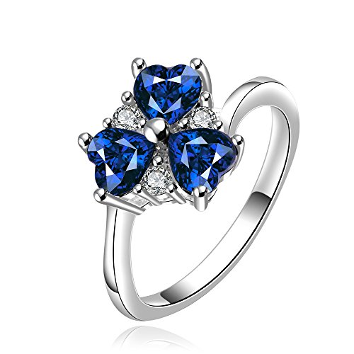 Nykkola Anello placcato argento Sterling 925, con cristalli blu a forma di cuore, da donna