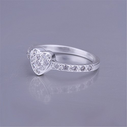 NYKKOLA - Anello placcato in argento Sterling 925 con cuore di cristallo, per donne e ragazze e placcato Argento, 58 (18.5), cod. TEYJT6YHRH313