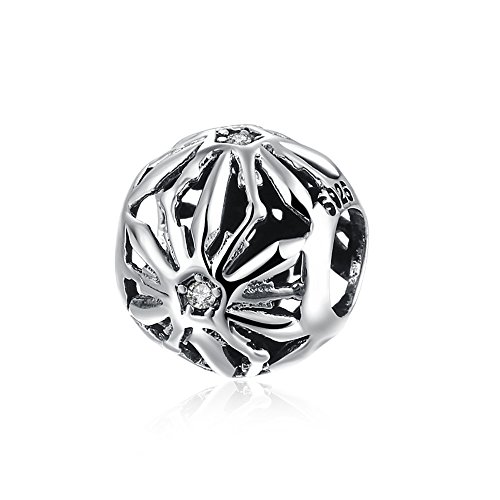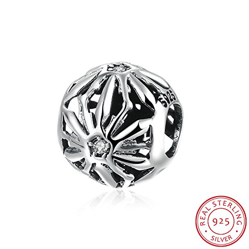 NYKKOLA Charm in argento Sterling 925 a forma di fiore cavo, con zirconi e cristalli e perle di cristallo, compatibile con bracciali Pandora