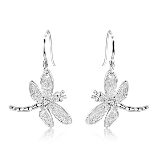 Nykkola - Orecchini a gancio a forma di libellula placcati argento sterling 925